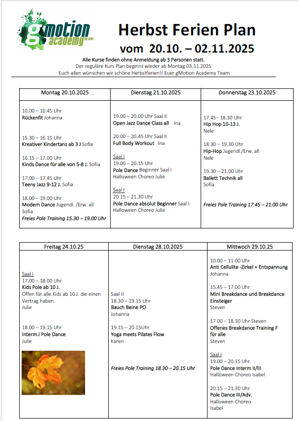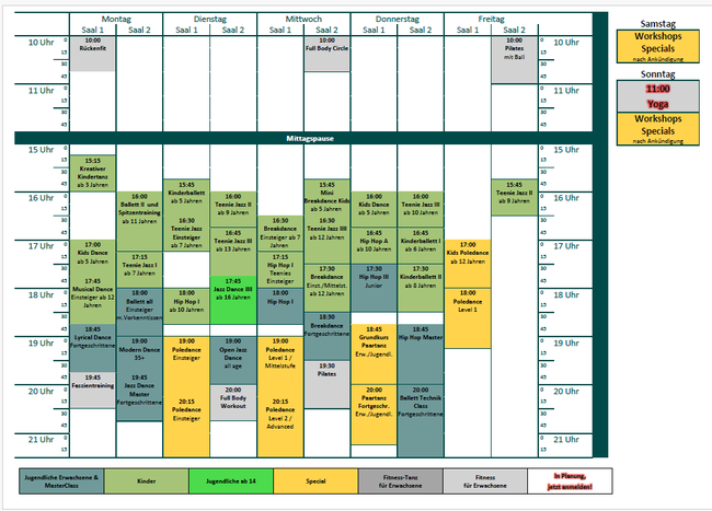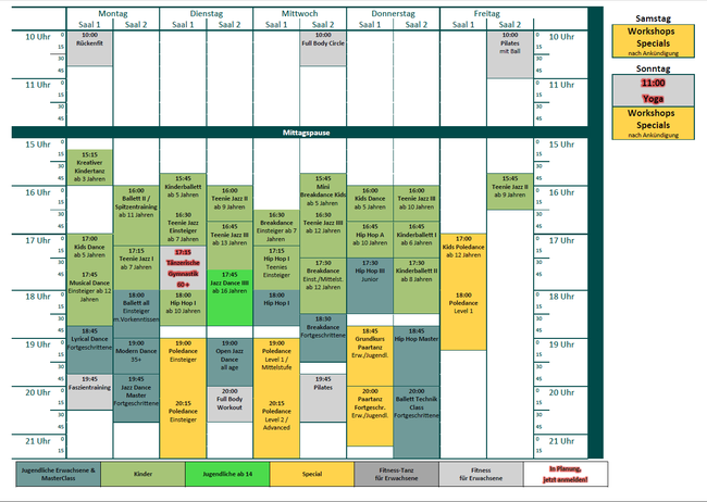 Entdecke unsere Kursvielfalt und melde dich jetzt gleich zu deiner kostenlosen Schnupperstunde an. (Außer Specials)