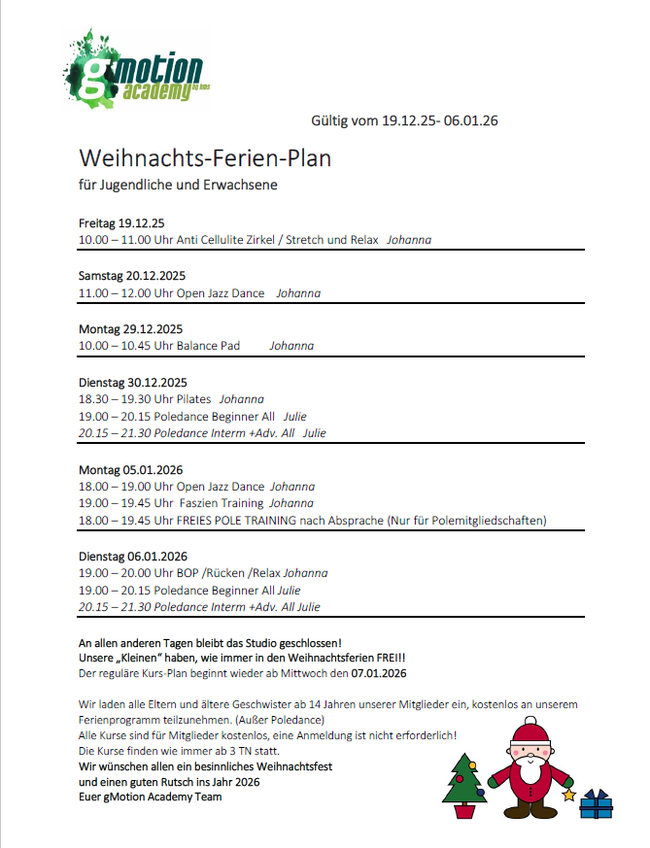 Weihnachts - Ferien - Plan 2025/26