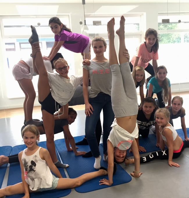 Dann hat die zweite Woche angefangen. Als erstes habe ich Kostüme sortiert und Winny und Johanna geholfen das Büro aufzuräumen. Danach habe ich bei Akrobatik zugeschaut. Viele der Kinder machen mit Leichtigkeit Handstandüberschlag oder Spagat. Die Hälfte der Kinder hat sich in ca. 10 min. sogar eine eigene kleine Choreo ausgedacht. Am Ende haben wir alle eine große Pyramide gebaut (siehe Foto;)) Dann habe ich etwas am Tresen gearbeitet und später habe ich wieder bei Be Balance und Musical Sow Dance mitgemacht. Dort haben wir wieder einen coolen Tanz gelernt. Dieses Mal war etwas langsamer und dennoch sehr anspruchsvoll (zumindest für jemanden, der sonst nur Kampfsport macht;) ).